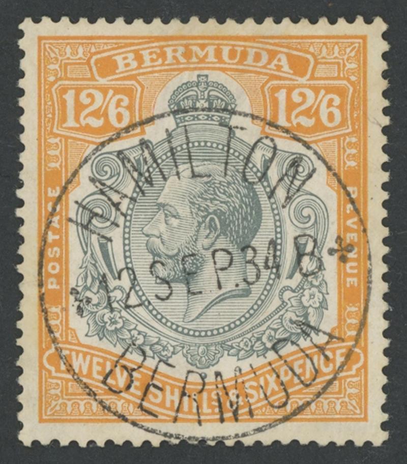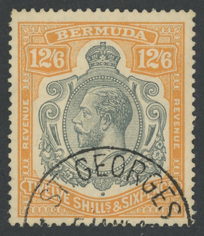 POSTAL FISCALS: 1937 KGV Keyplates inscribed 'REVENUE/REVENUE' 12/6d grey & orange SG F1, small-part St Georges cds postal cancel, Cat £1500. (Image1)