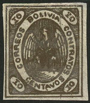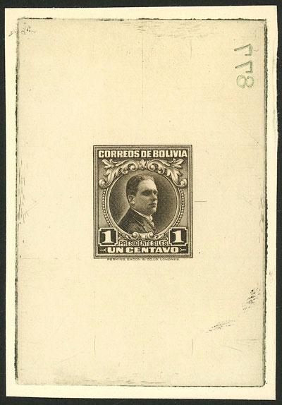 Sc.241, 1937 1c. President Siles, DIE PROOF in very dark chestnut, excellent quality! (Image)