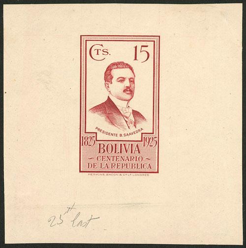Sc.154, 1925 15c. President B. Saavedra, die proof, excellent! (Image)