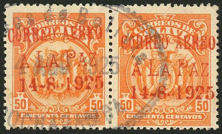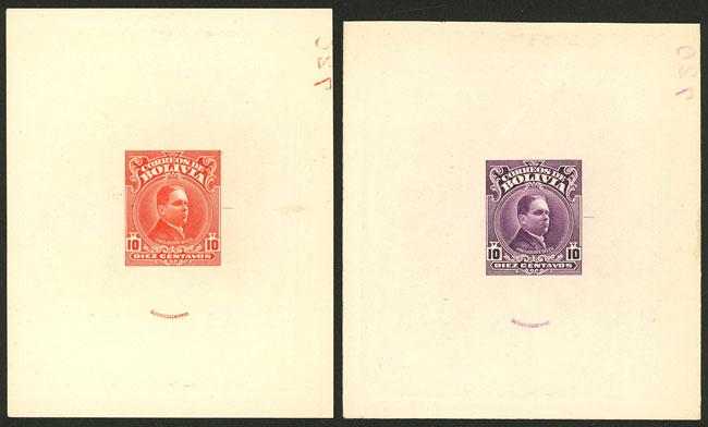 Sc.190, 1928 10c. President Siles, DIE PROOFS in redish orange and violet, excellent quality! (Image)
