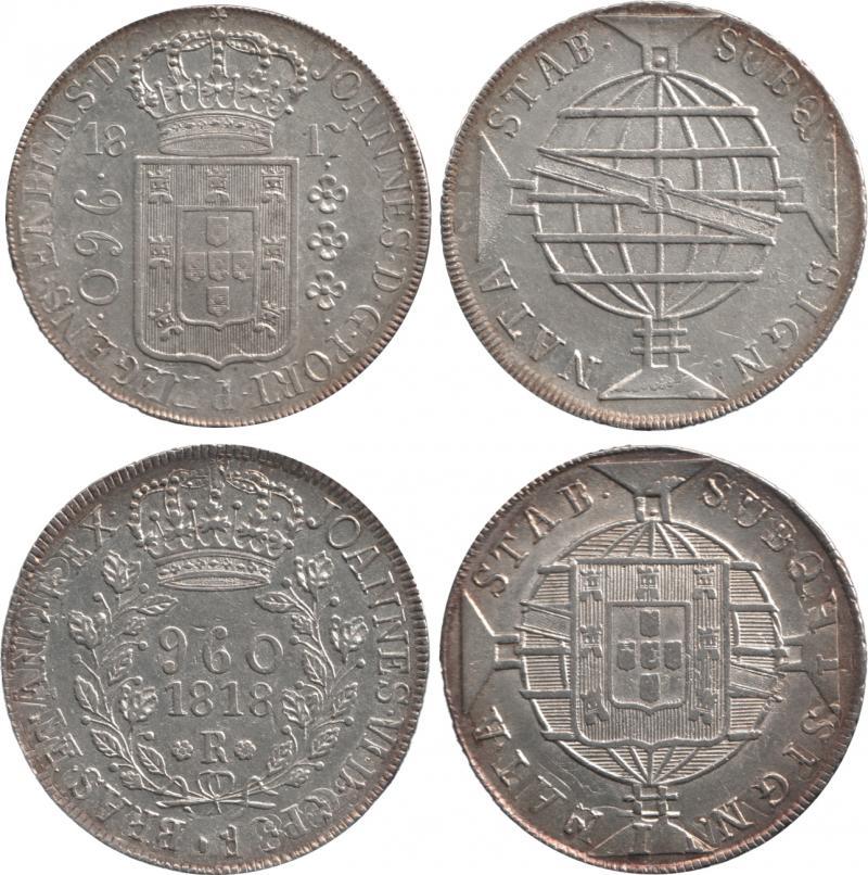 960 reis 1817R KM 307.3; and 1818R KM 326.1, both with traces of host Spanish colonial 8 reales, both gEF. (2) (Image1)