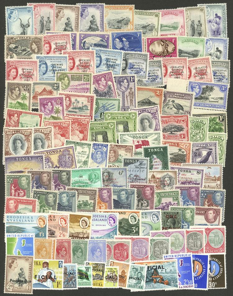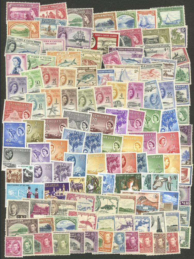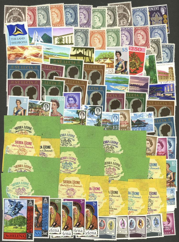 BRITISH COLONIES & FORMER COLONIES: Envelope containing large number of VERY THEMATIC complete sets, all MNH and of excellent quality, Scott catalog value over US$250, good opportunity! ATTENTION: Please view all the photos of the lot, because all the stamps have been scanned. (Image)