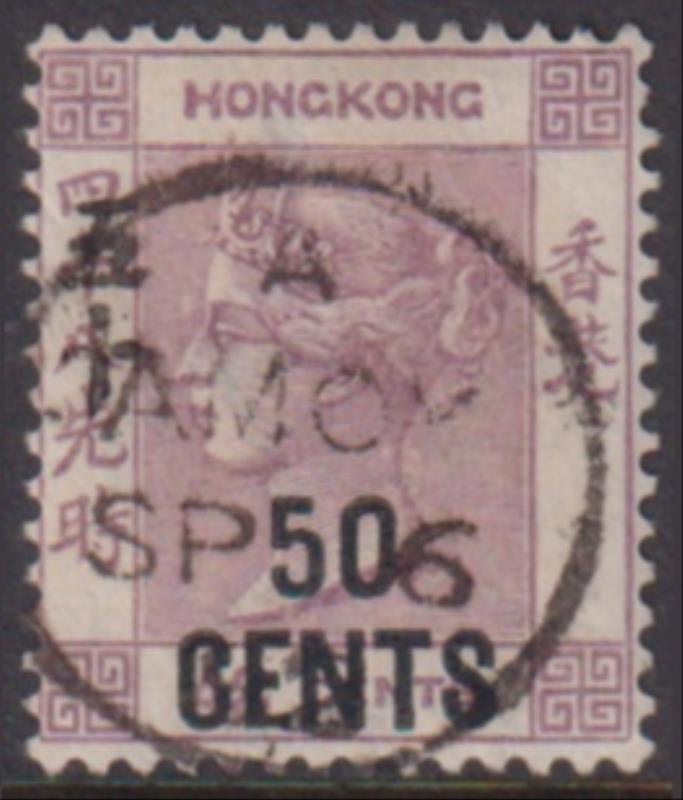 British Post Offices in China-Amoy 1881 50c on 48c QV dull purple, crown CA wmk. SG Z45. Cat £20. FU. (Image)