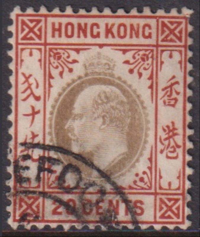 British Post Offices in China-Chefoo 1904 20c EVII slate & chestnut, multiple crown CA wmk. SG Z279. Cat £25. FU cds. (Image)