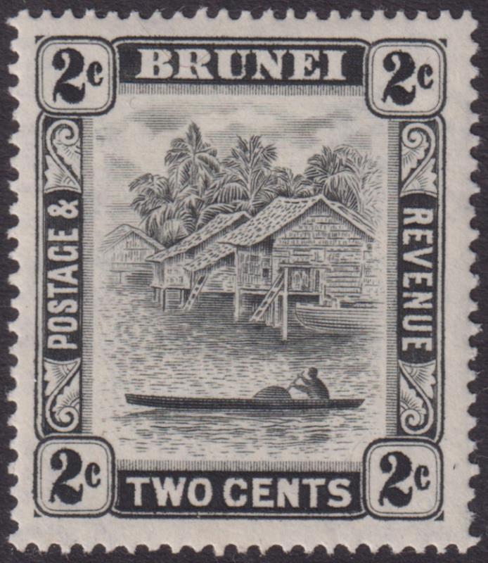 Brunei 1951 2c River Scene black, mult script CA wmk, p14½ x 13½. Variety "redrawn clouds". SG 80ac. Cat £90. Mint. (Image)