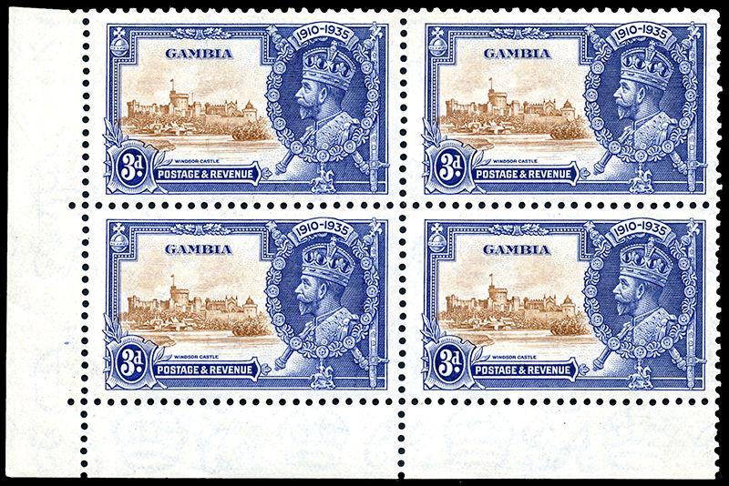 GAMBIA: 126var: 1935 Silver Jubilee 3d with EXTRA FLAGSTAFF variety in LL corner margin, nh, very fine. (SG 144a - £207+) (Image)
