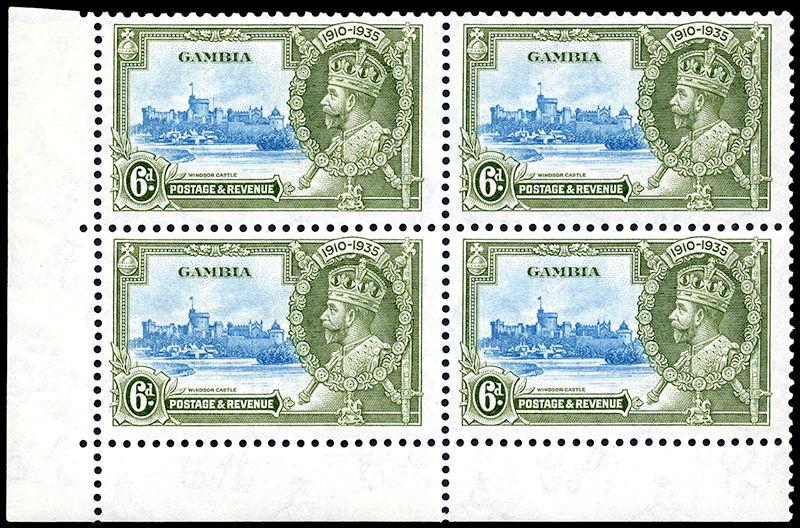 GAMBIA: 127var: 1935 Silver Jubilee 6d with EXTRA FLAGSTAFF variety in LL corner margin, nh, almost very fine. (SG 145a - £202+) (Image)