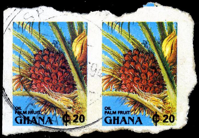 1526A var: 20ce Oil Palm Fruit, IMPERFORATE PAIR, used separated by scissors at left, but by hand on other sides. The only such pair we have seen, unlisted and RARE. (Image)
