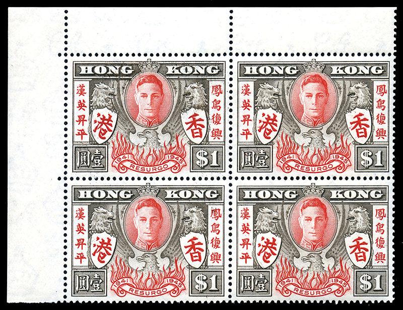 175var: $1 brown and red with EXTRA STROKE variety (R. 1/2), UR stamp in UL corner margin block of four, nh, very fine. (SG 170a - £130) (Image)