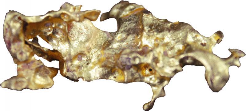 Gold nugget 37.15g with quartz inclusions, specific gravity 16.1g/cm3 (approx 77% pure by weight). (Image1)