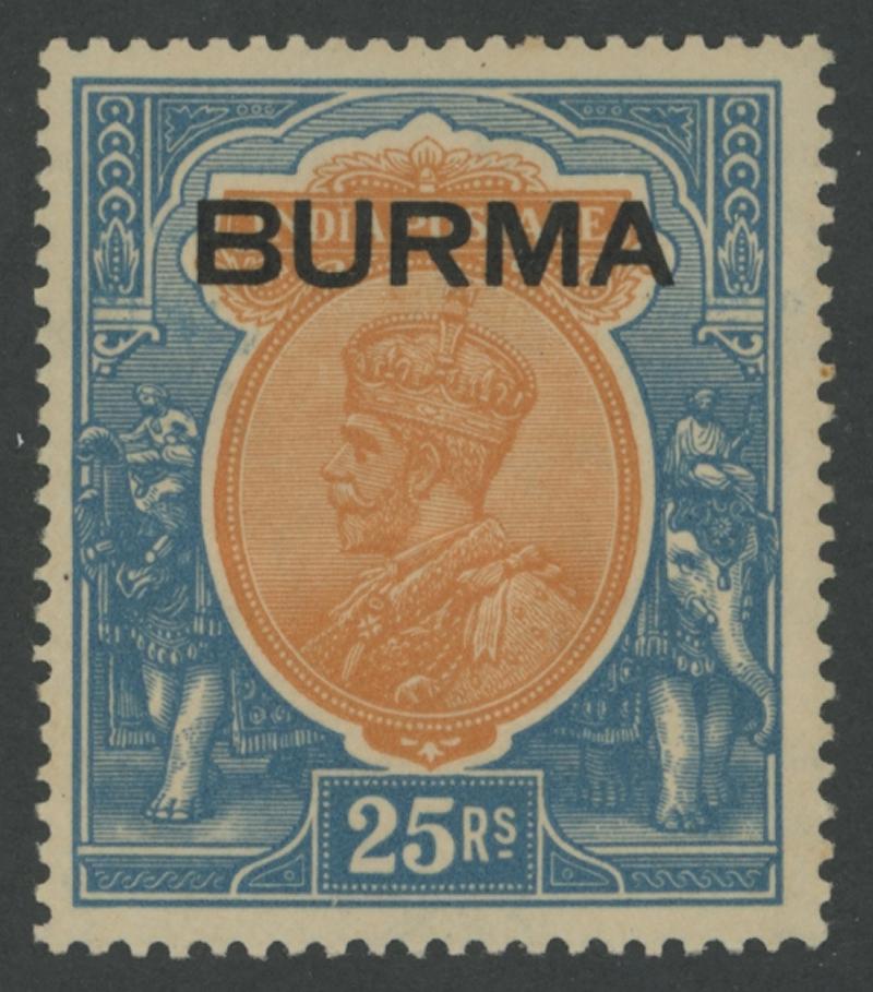 1937 Overprints on India KGV Heads 25r SG 18, well-centred, apparently unmounted but with a couple of tiny spots of gum disturbance, Cat £1800 for unmounted (Murray Payne Cat (2015) £750 for mounted). (Image1)