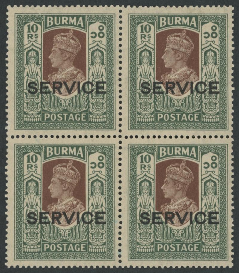 OFFICIAL STAMPS: 1937 'BURMA/SERVICE' Overprints on India KGV 10r green & scarlet SG O14, well-centred, unmounted, Cat £750. (Image1)