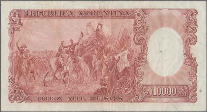 Argentina Caja de Conversión and El Banco Central de la Republica Argentina, huge lot with 32 banknotes with many varieties, 1915-1970 series, comprising for example 5 and 10 Pesos 1915/30 (P.244a, 245b, F/F-), 5 Pesos ND(1960-62) (P.275b, UNC), 1.000 Pesos ND(1960) (P.274b, XF/XF+), 1.000 Pesos ND(1966-69) (P.279, XF+/aUNC), 10 Pesos overprint on 1.000 Pesos ND(1969-71) (P.284, aUNC/UNC), 10.000 Pesos ND(1961-69) (P.281, F+/VF) and many more. Viewing recommended! (32 pcs.) Catalog number(s): Pick divers (Image)