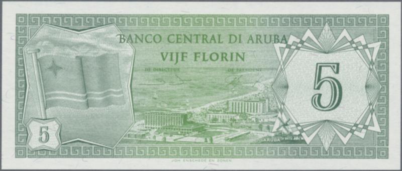 Aruba Banco Central di Aruba, set with 5, 10 and 25 Florin 1986, P.1-3 in UNC condition. (3 pcs.) Catalog number(s): Pick 1-3 (Image)
