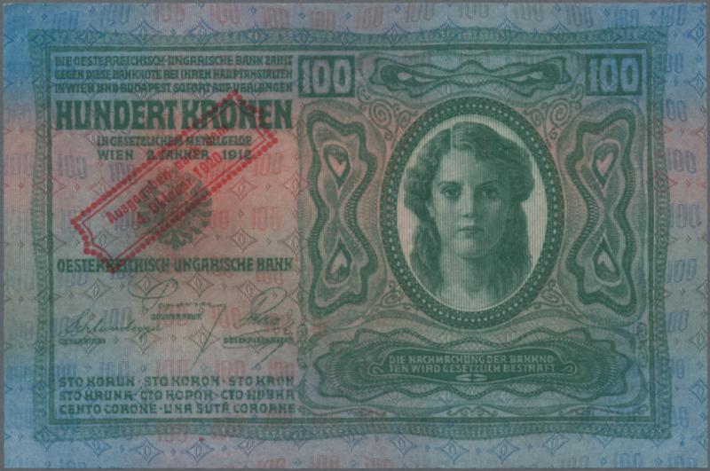 Austria Oesterreichisch-Ungarische Bank, 100 Kronen 1912 (1920) with additional overprint "Ausgegeben nach dem 4. Oktober 1920", P.47 in UNC condition. Catalog number(s): Pick 47 (Image)