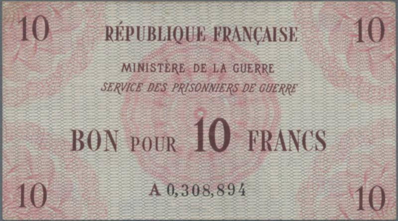 France POW II. WW, 10 Francs ND, Campb. 7012a, Good VF Catalog number(s): Campb. 7012a (Image)