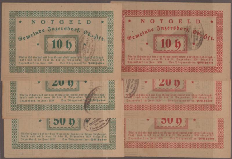 Austria Inzersdorf, OÖ, 2 x 10,20,50 Heller on reverse of calender sheets, 10,20,50 Heller, 4 x 5,10,20,50 Heller, different issues, 17 notes, KK-S415 div., UNC Catalog number(s): KK-S415V (Image)