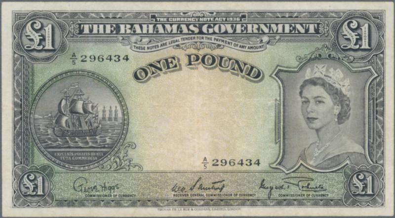 Bahamas 1 Pound ND (1953), P. 15 d, slightly pressed, F-VF Catalog number(s): P. 15 d (Image)