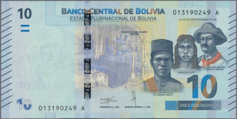 Bolivia 10,20,50,100,200 Bolivianos ND (2018-2019), set of 5 notes, P. 248-252, UNC Catalog number(s): P. 248-252 (Image)