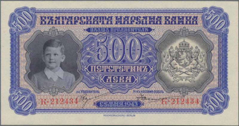 Bulgaria - Bank notes 500 Leva 1943, P. 66 a, UNC Catalog number(s): P. 66 a (Image)