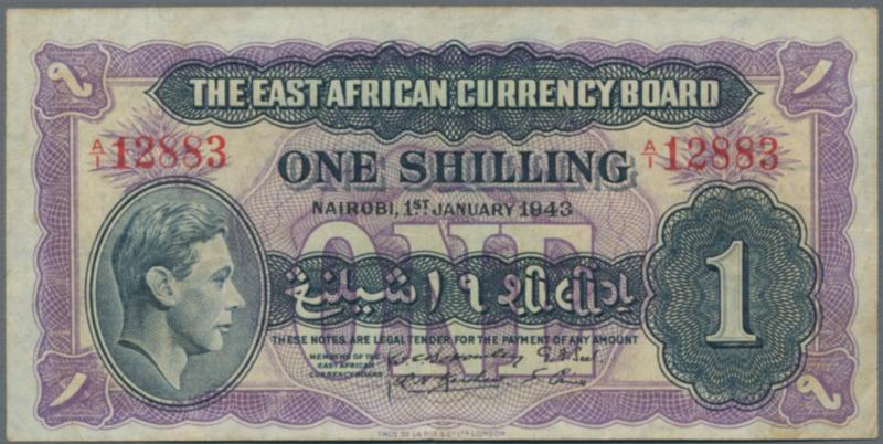 East Africa 1 Shilling 1.11943, P. 27, VF Catalog number(s): P. 27 (Image)