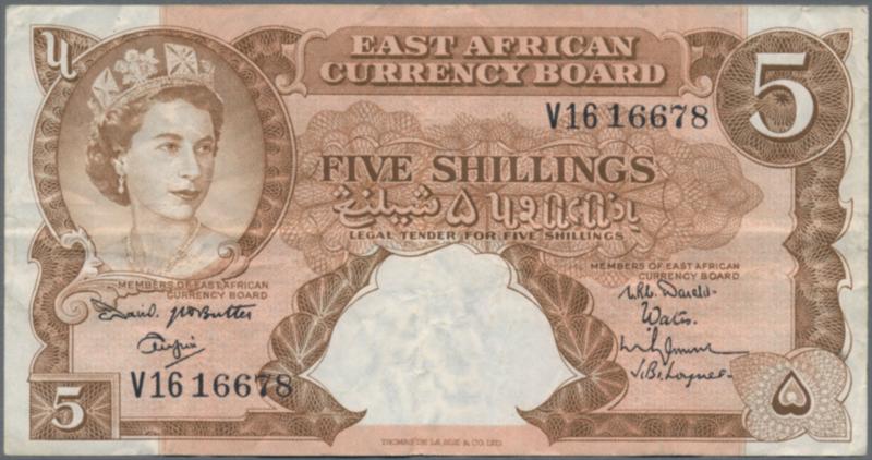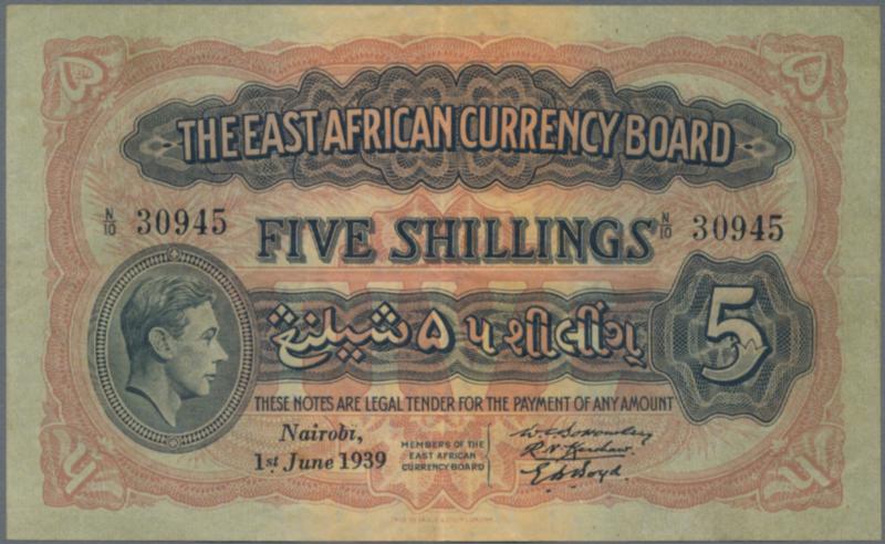 East Africa 5 Shillings 1.6.1939, P. 28 a, Good VF Catalog number(s): P. 28 a (Image)