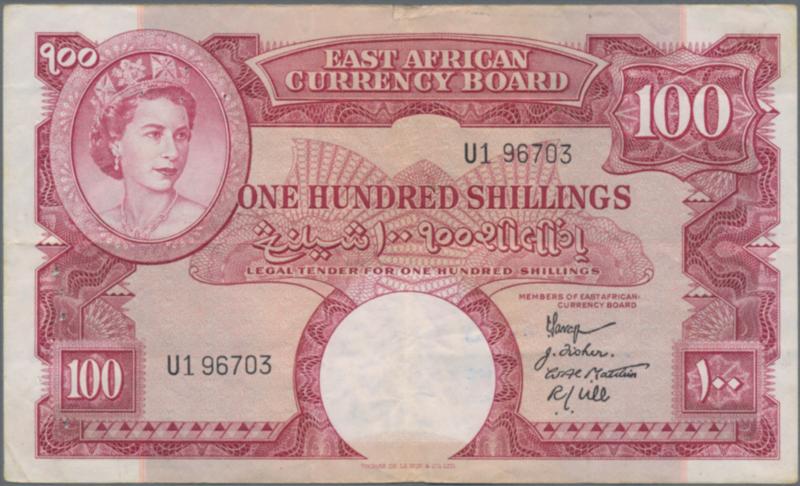 East Africa 100 Shillings ND (1958), P. 40, VF Catalog number(s): P. 40 (Image)