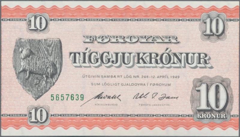 Faeroe Islands 10 Kronur law of 12.4.1949, 100 Kronur 1990, 1994, P. 15d, 21e, 21f, AU/UNC, UNC (2) Catalog number(s): P. 15d (Image)