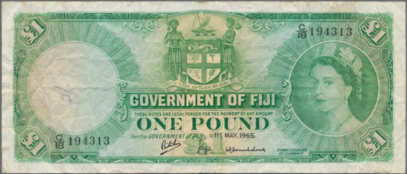 Fiji - Bank notes 1 Pound 1.7.1950, 1.5.1965, P. 40 e, 53 a, VG Catalog number(s): P. 40 e (Image)
