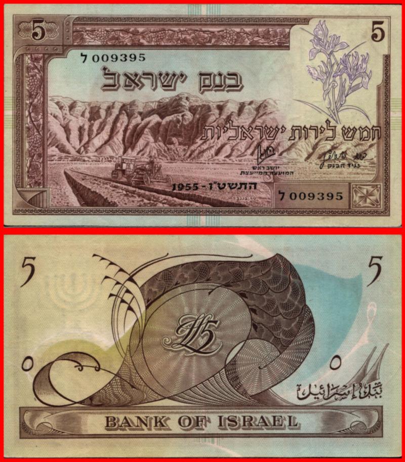 Israel, Bank of Israel Pick # 26a 1955 5 Lirort. S/N ל 009395 UNC (Image)
