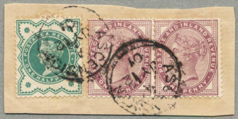 Automatisch generierte Übersetzung: 1901, Briefmarken von GB gebraucht in Ascension, 1d + 1d + 1/2d von Victoria (1881 und 1900 Ausgaben), auf Briefstück, gestempelt ASCENSION frisch und gesucht, ex Besancon, Kabinett! Schätzpreis 800 EUR.(Image)