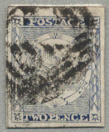 Automatisch generierte Übersetzung: 1854, Steindruck 4 d in blau, Wasserzeichen Schwan seitlich, ein gebrauchtes Stück mit ringsum vollen bis breiten Rändern, gestempelt mit fast vollständiger Abschlag des leere Stempel Handstempel in rot, aktiv zu Perth und in Guildford zwischen 1855 zu 1856, ausgezeichnet, Attest RPSV 2019, frisch und gesucht, ex Besancon, Kabinett! Schätzpreis 1. 000 EUR.(Image)