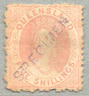 1866-7, 5s, pale rose, handstamped violet SPECIMEN, NG, perf 13, desirable and fresh, VF-XF! Estimate 90€.