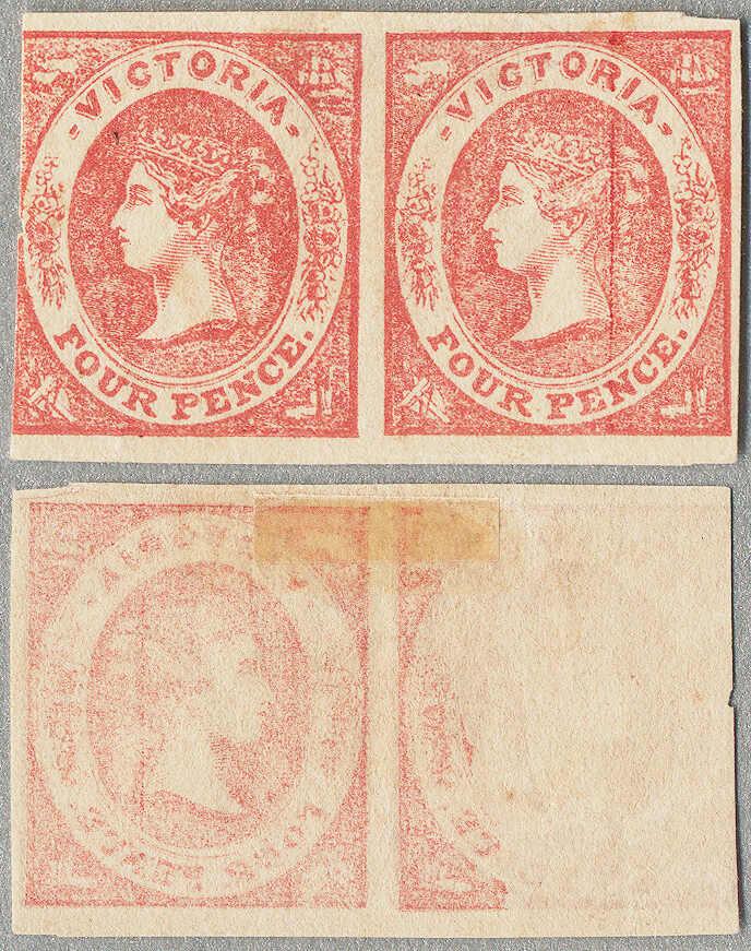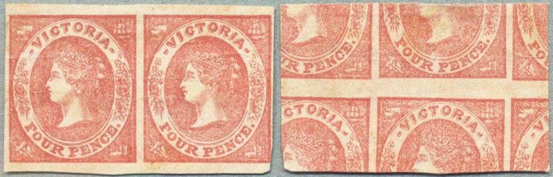 1860, 1 d, dull lake, imperf, thin paper, pair, LPOG, very fresh and desirable, ex Besancon, XF! Estimate 200€.
