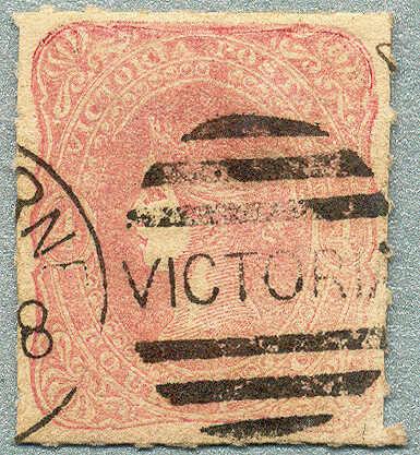 Automatisch generierte Übersetzung: 1860, 1 d., karminrosa, sauber getrennte Zähnung 14-16, Wasserzeichen 2, gebraucht mit ovalem Ringstempel, frisch und perfekt Artikel, CV £400, Kabinett! Schätzpreis 470 EUR.(Image)