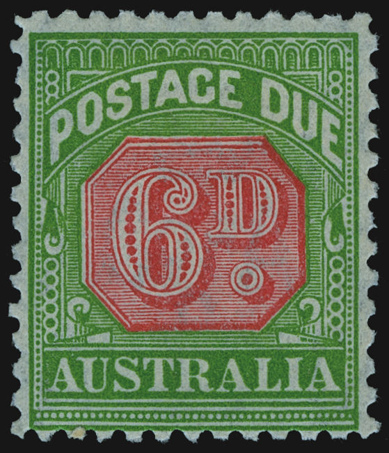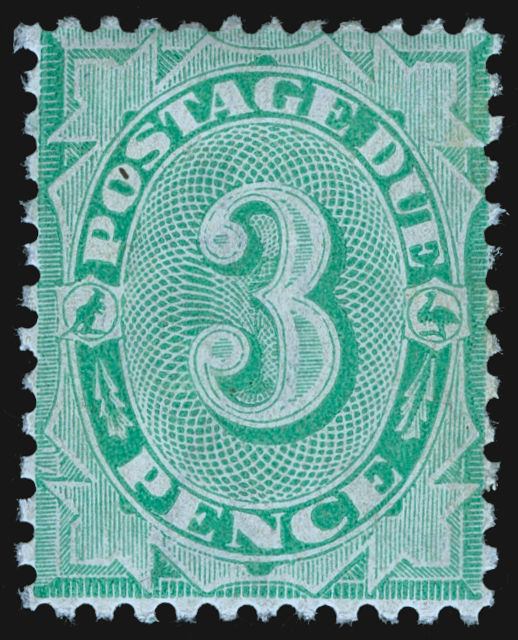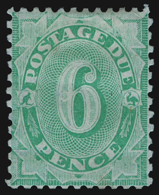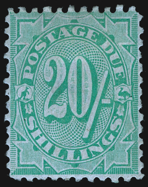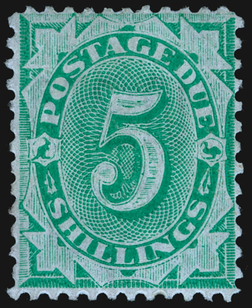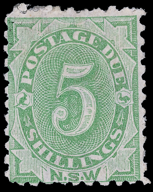 J8 (D8) 1891-92 5' green Postage Due, wmkd Crown over NSW, perf 10, an unusually difficult and undercatalogued mint stamp, given that the vast majority of this denomination were later overprinted "Specimen" or canceled to order, (Image)