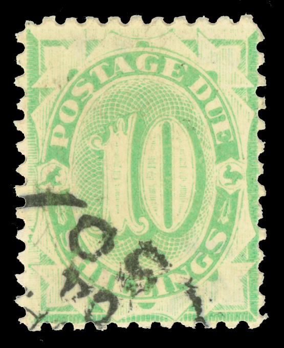 J21 (D43) 1903 10' dull green Postage Due, wmkd Crown and NSW, perf 11, very rare and substantially undercatalogued postally used, well centered, (Image)