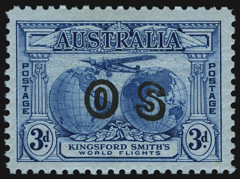 O1-2 (O123-24) 1931 2d-3d Southern Cross above Hemispheres (Kingsford-Smith issue), overprinted "OS" SG Type O4, unwmkd, perf 11, cplt (2), scarce mint as most were canceled-to-order, (Image)