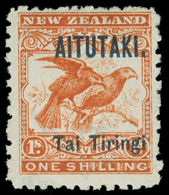 6e (7ba var) 1903 1' orange-brown New Zealand Kea and Kaka overprinted, ERROR - "Tiringi" without stop (row 7, pos 12), rarely offered under catalogued error which occurred once in a sheet of 120, 74 examples printed (including all SG listed shades), (Image)