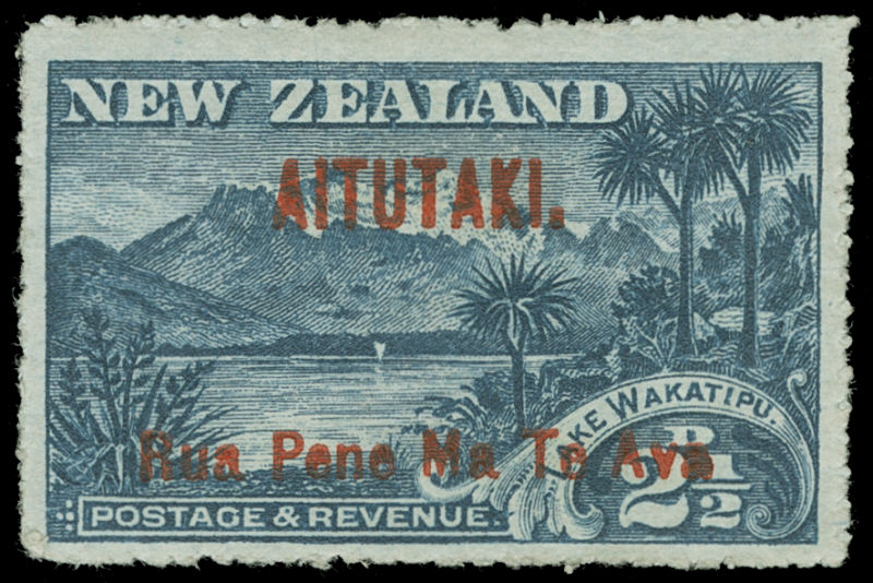 9a (3a) 1903 2½d deep blue Lake Wakapitu of New Zealand, perf 14, overprinted in red with VARIETY - "Ava" without stop, only 128 overprinted with this variety, fresh and bright, seldom offered, (Image)