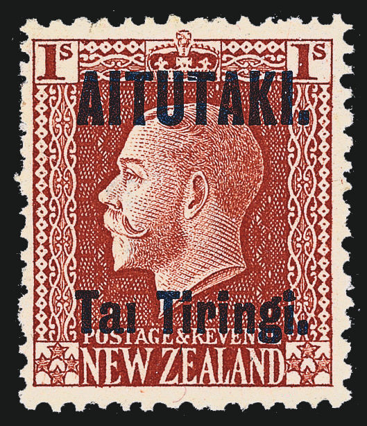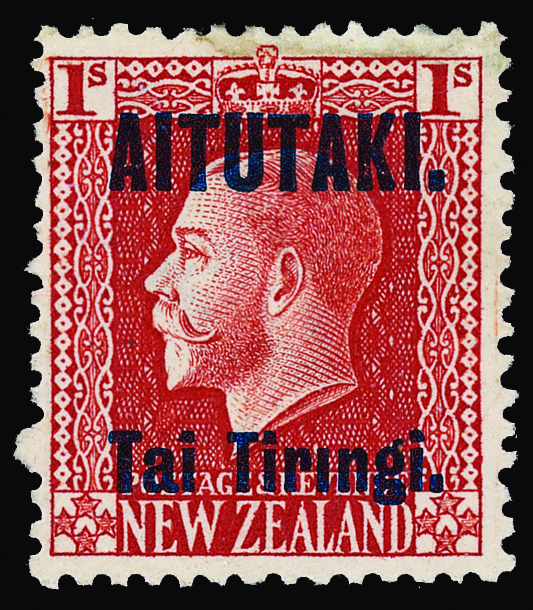 18c (14bb) 1917 1' orange K George V of New Zealand overprinted, ERROR - "Tai" without dot on "i", a scarce stamp (only 105 of this variety were printed), a fresh well centered example (Image)