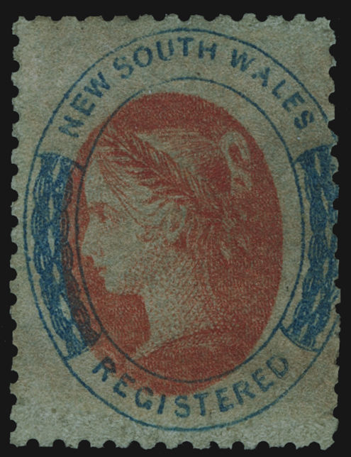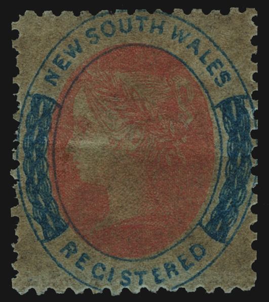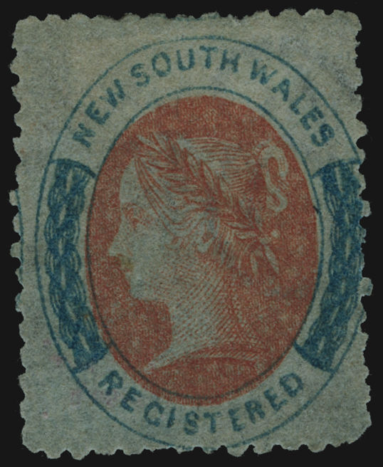 F5 (125) 1863 (6d) rose-red and Prussian blue Q Victoria Registred stamp on yellowish wove paper, wmkd double-lined "6", perf 13, signed, (Image)