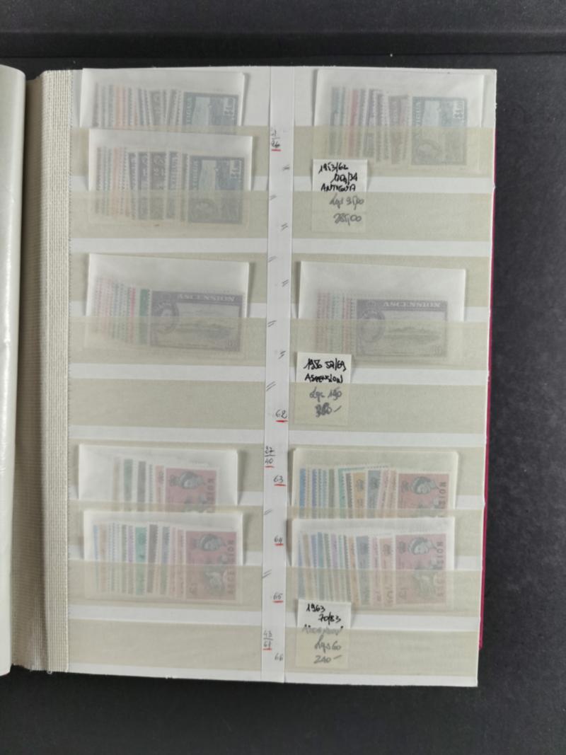 1932/70, Ascension to Tristan de Cunha, mint never hinged accumulation, many better cpl. sets of the modern area in duplicates, with Ascension SG-Nr. 57-59(2), Bermuda 135-150(3), Gibraltar 145-158(2), Sudan 123-139(2), etc., very fine condition, neatly housed in one album