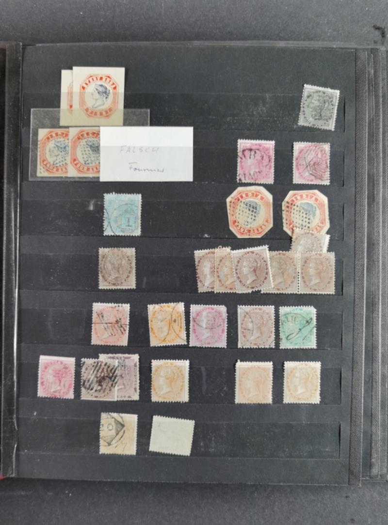 1848/1900 (ca.), unused and used collection/holding in 6 stockbooks, containing much interesting and good material like Cape woodblocks, early Mauritius with Sherwin, extensive Australian States with many 'REPRINT' stamps, South Australia SG 195-208s, British Guiana SG10 unused (cert. Philatelic Experts), Cyprus SG 11-15, Tobago SG 5, Hongkong SG 40-42s, Malta SG 20-28s, etc., etc. Some early items with repairs, but generally very nice quality. Some old certificates. A marvellous lot.