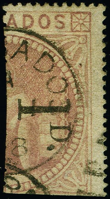 1878, West Indian Press overprint 1 d. on half of 5 s. dull rose, Type 3b, used with cds. "BARBADOS", fine and scarce, certificate RPSL (1959)