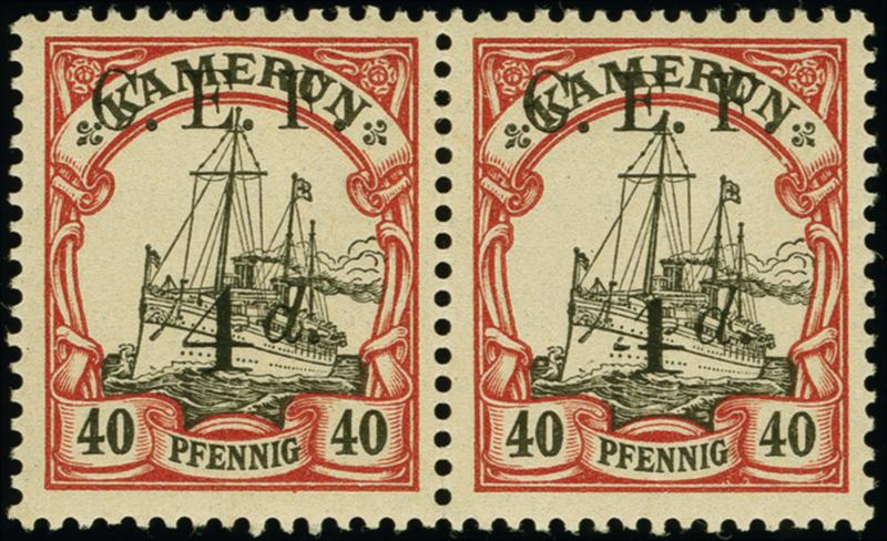 4d. on 40 pfg., horizontal pair, the right stamp with variety "short 4", unused, very fine and scarce
