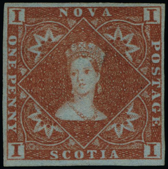 1851, 1 d. red-brown on blued paper, fresh color and good to large margins, without gum, a fine and fresh example of this rare stamp, certificate PF (1977)