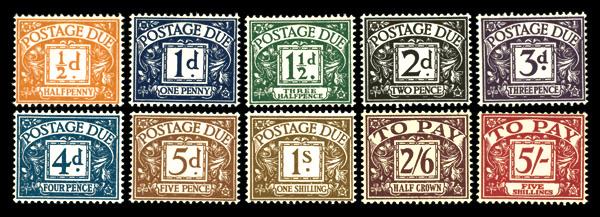 Postage Dues, 1955-57, ½d-5s complete (Scott J45-J54), St. Edward's Crown watermark, o.g., never hinged, Fine to Very Fine. SG D46/55. Scott $588. (Image)