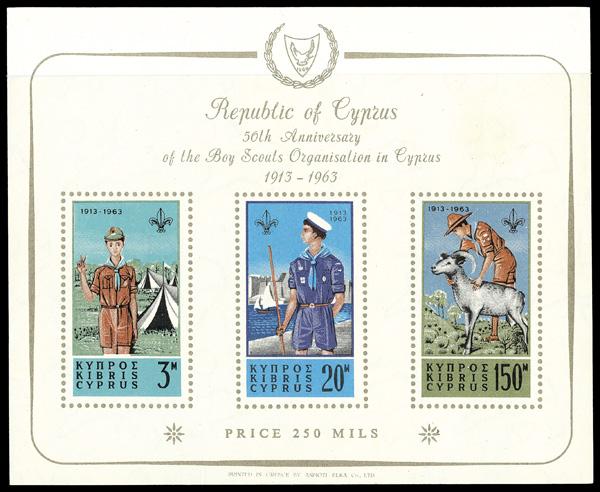 1963, Boy Scout souvenir sheet of 3 (Scott 226a), o.g., never hinged, Very Fine. SG MS231a. Scott $120. (Image)