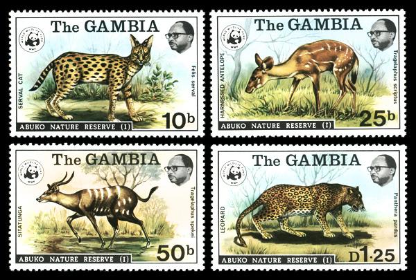 1976, 10b-1.25d Abuko Nature Reserve, complete (Scott 341-344), set of 4, o.g., never hinged, Extremely Fine. Scott $39. (Image)